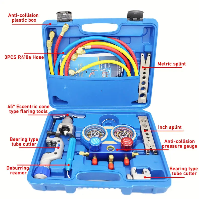 Professional AC Diagnostic Tool Kit with R32 R410A R134a R22 - Comprehensive Maintenance and Expansion Set for Copper and Eccentric Pipes, Automotive Air Conditioning Maintenance|Vibrating Sensors|Durable Metal Construction