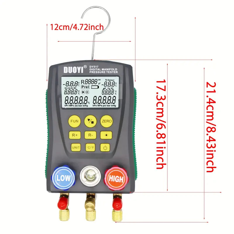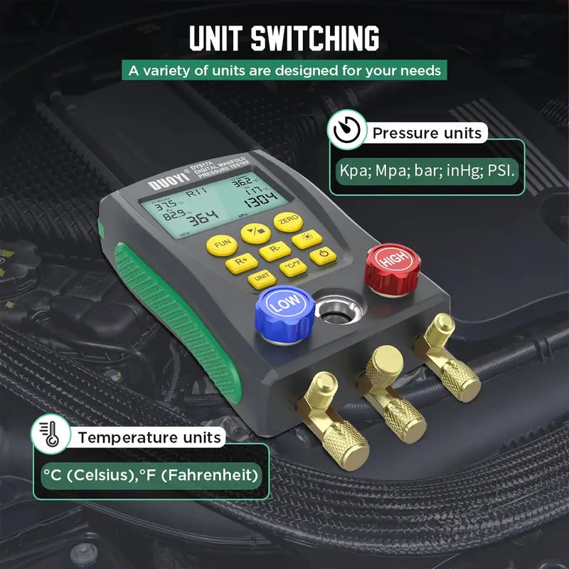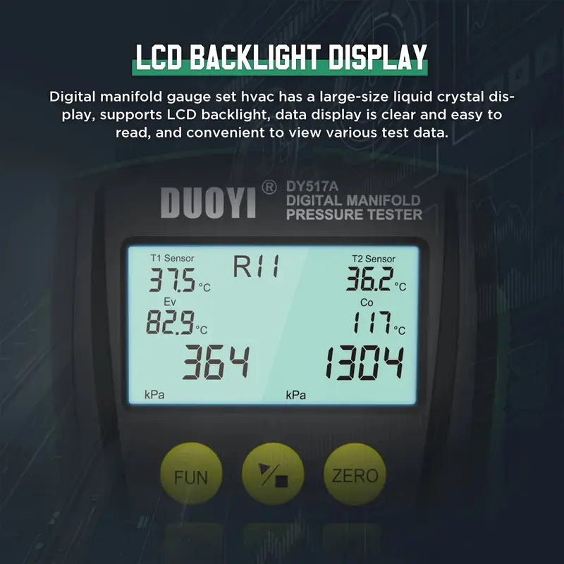 DY517 Digital Refrigerant Manifold Kit, Electronic Manifold, HVAC Vacuum Pressure Gauge (Battery Not Included)