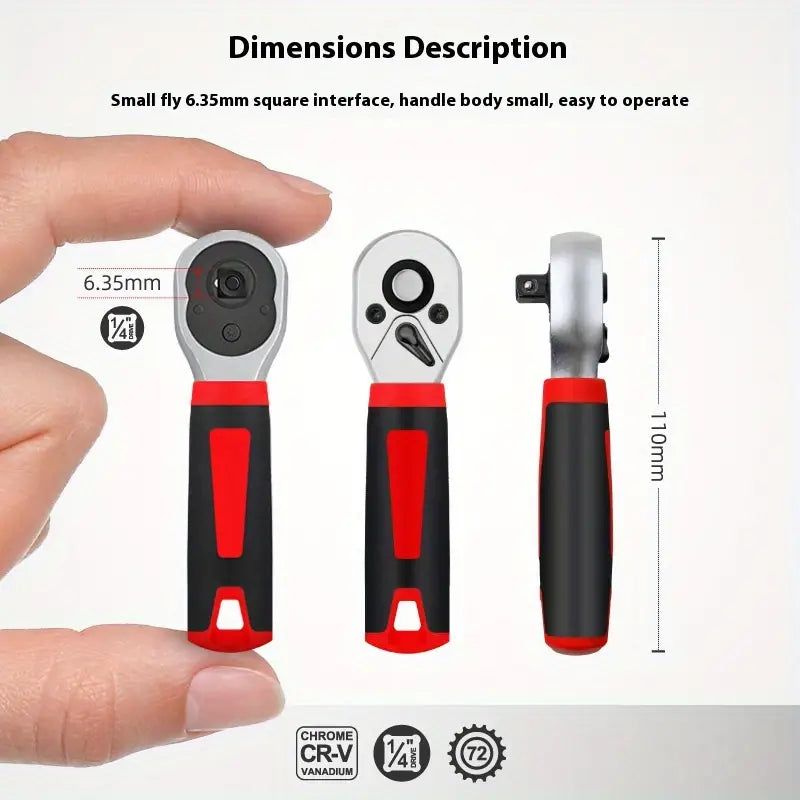 1/4 Inch Ratchet Socket Wrench, Small High Torque Socket, Professional Grade Industrial Grade Wheel Socket Wrench Tool, 72-Tooth High Torque, Essential for Home Decoration