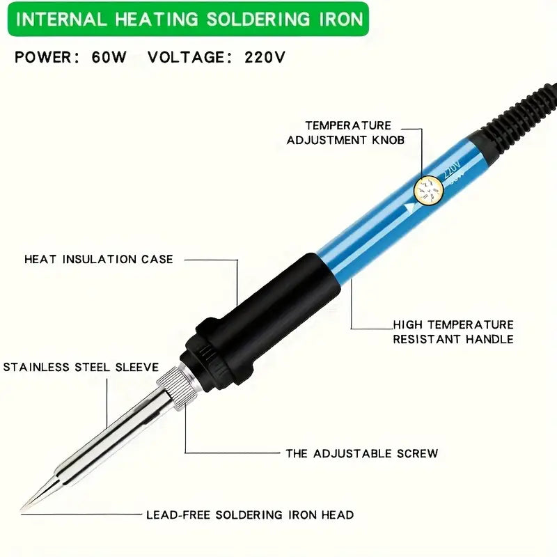 19pcs Electric Soldering Iron Kit 60W, 180-450°Adjustable Temperature Iron, with Digital Multimeter, European Standard Plug, 220V/240V Constant Temperature Quick Heating Smart Soldering Iron Kit for DIY