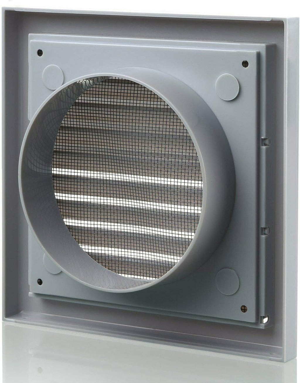 100mm (4 inch) Dia Gray Plastic External Fixed Blade Vent Cover Grille (155x155mm External Size) Extractor Fan Air Ventilation External or Internal Wall Grille for Use Ducting Systems with Flyscreen