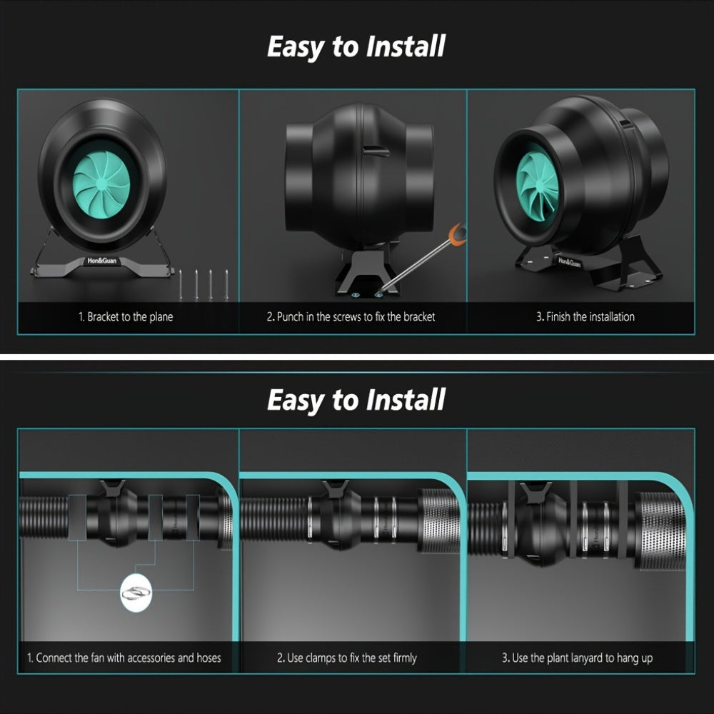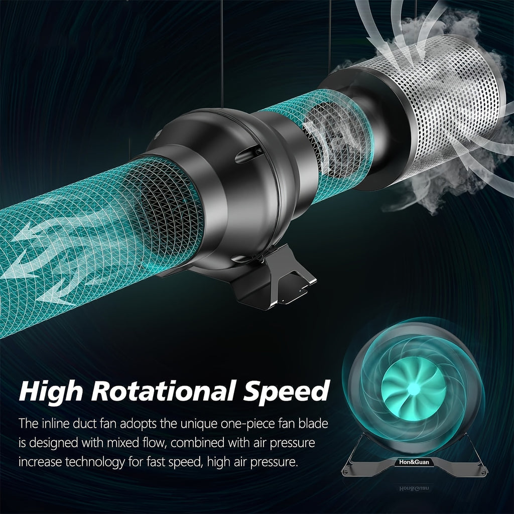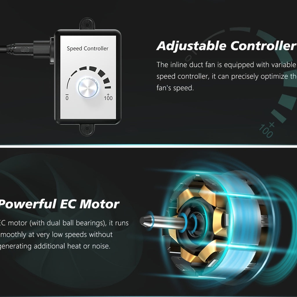 【Adjustable Controller】 The 4-inch duct fan includes a variable speed controller, which can adjust the air volume in ten steps, and the noise level is only 48 decibels even at the maximum air volume.