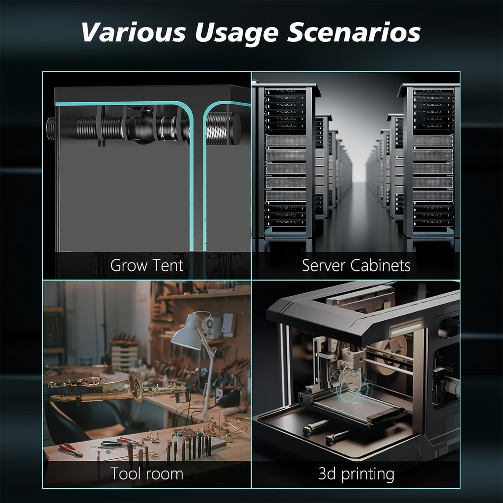 【Application Scenarios】Designed to quietly ventilate grow tents, hydroponics, DIY 3D printers, and HVAC systems, transfer heating/cooling to rooms, circulate fresh air, cool AV closets, exhaust odors.
