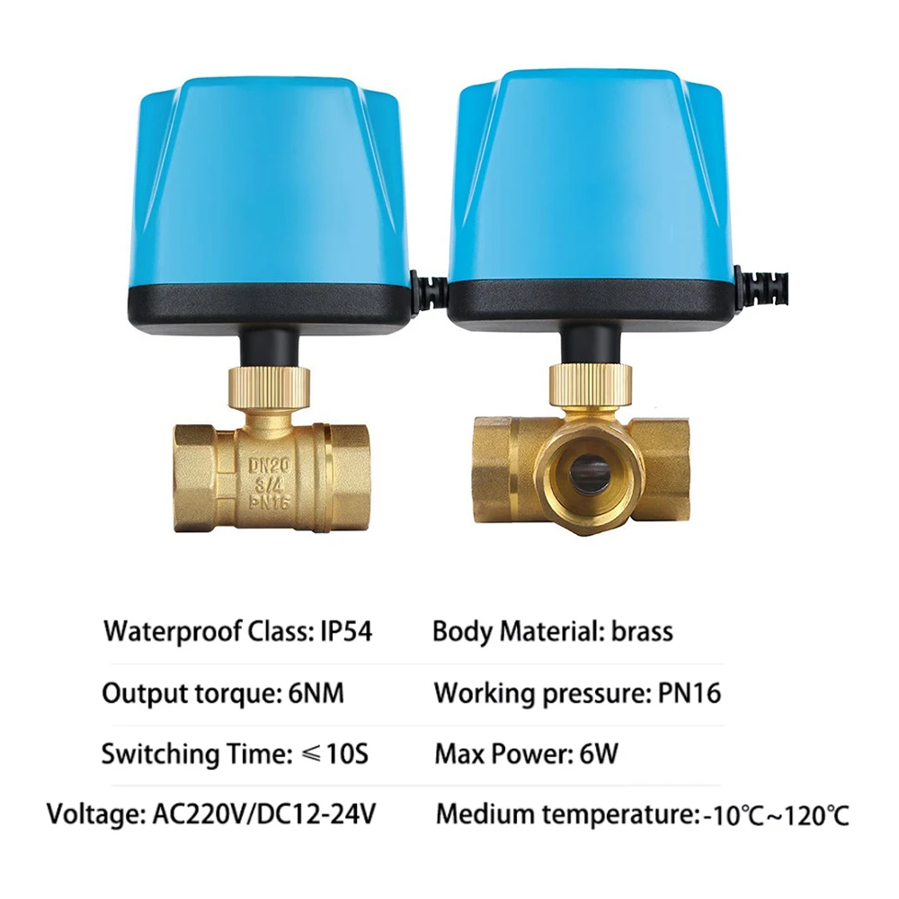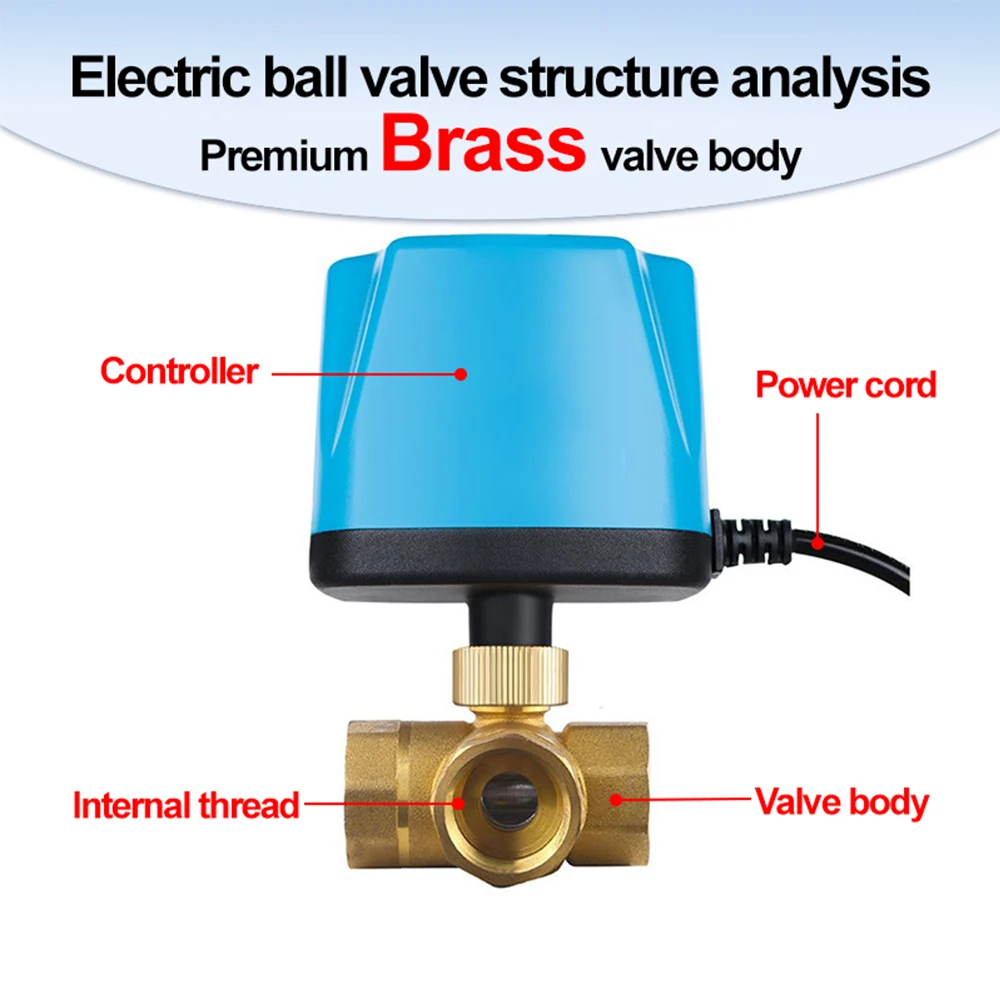 DC12V-24V or AC220V Electric Brass Ball Valve, 3-wire 2-control Electric Ball Valve 2-way, 3-way DN15 DN20 DN25 DN32 DN40 DN50