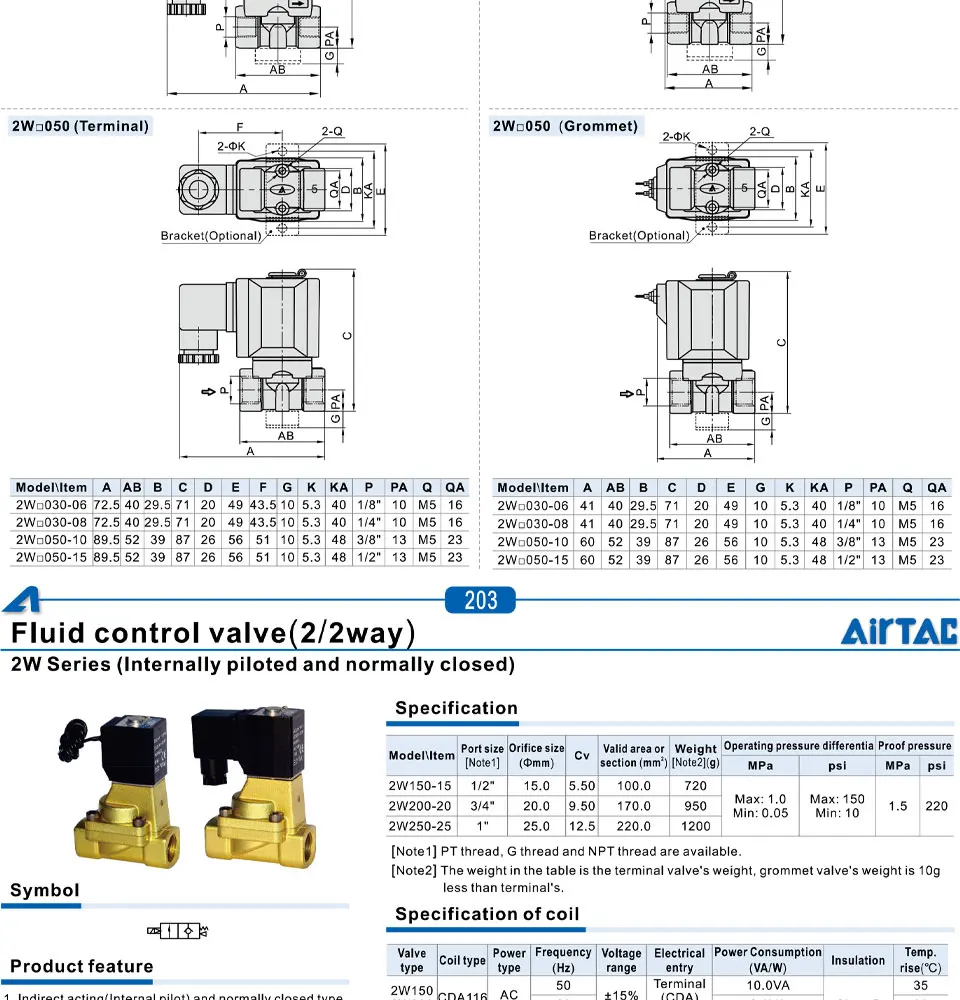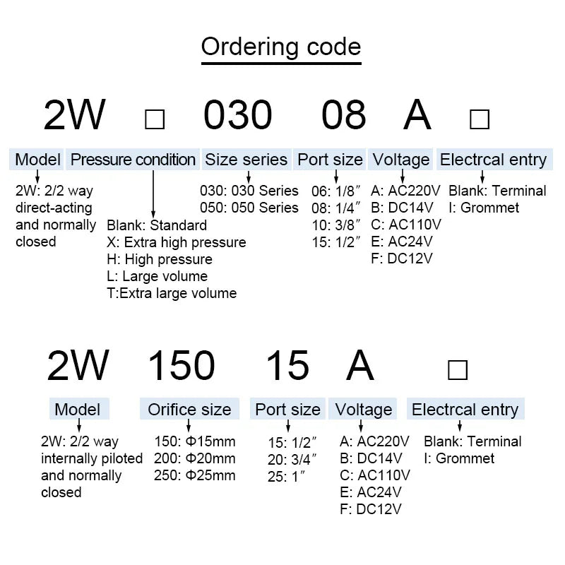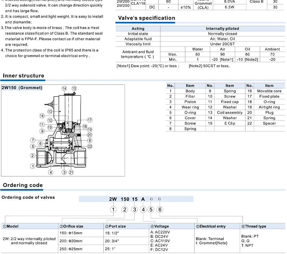 Model Number : 2W030-06/08 2W050-10/15 2W150-15 2W200-20 2W250-25