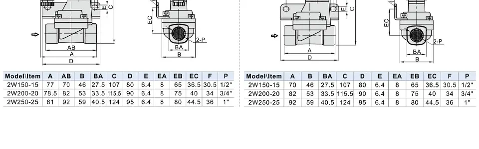 Model: 2W030-06 2W030-08 2W050-10 2W050-15 2W150-15 2W200-20 2W250-25