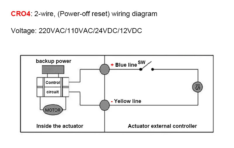 1.When the SW is closed, the valve opens/closes; After the position isin place, the internal power is automatically cut off, the valve remains on/off and the backup power is charged.