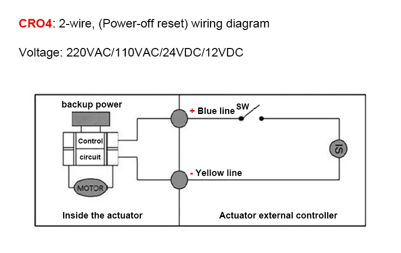 2.When the SW is disconnected, the valve is closed/opened; After the position is in place, the internal power is automatically cut off, the valveremains closed/open.