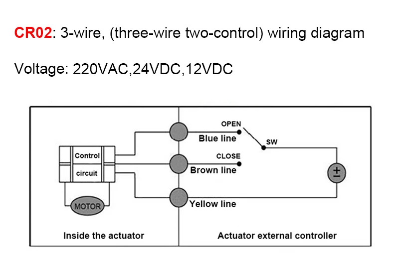 2. SW is connected to the CLOSE, the valve is closed, internal automatic power off after in place, the valve remains fully closed position.