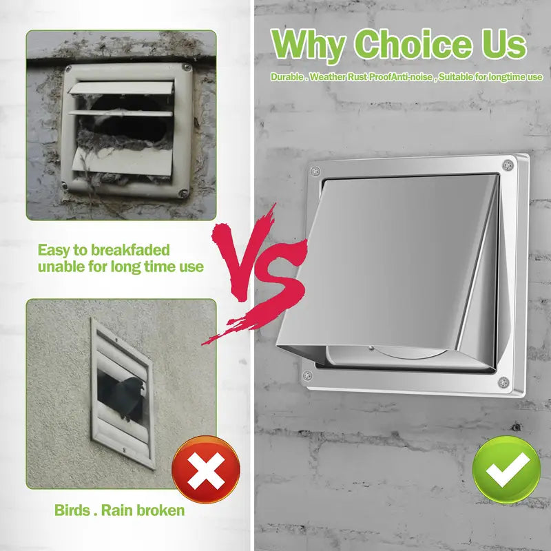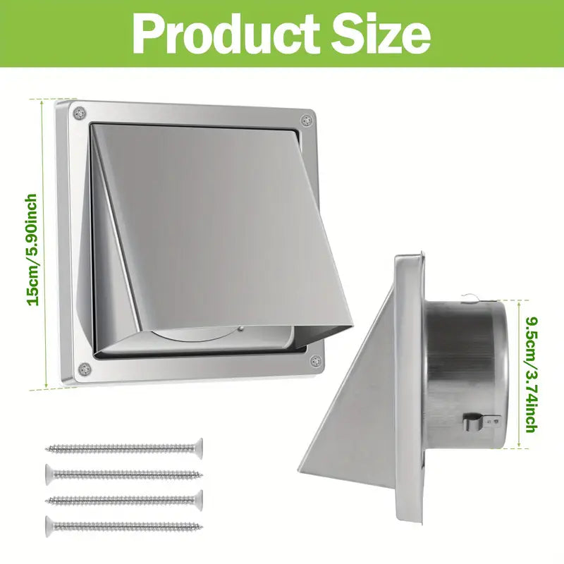 Heavy-Duty 304 Stainless Steel Dryer Vent Cover - Weatherproof, Rustproof Outdoor/Indoor Exhaust Vent Cover with Screws & Washers - Compatible with Dryer, Bathroom Fan, Kitchen Hood, RV - Easy Installation, Ideal for Residential/Commercial Use, Weatherproof Ventilation, Minimalist Style, Highquality Finish, Commercial Property Managers