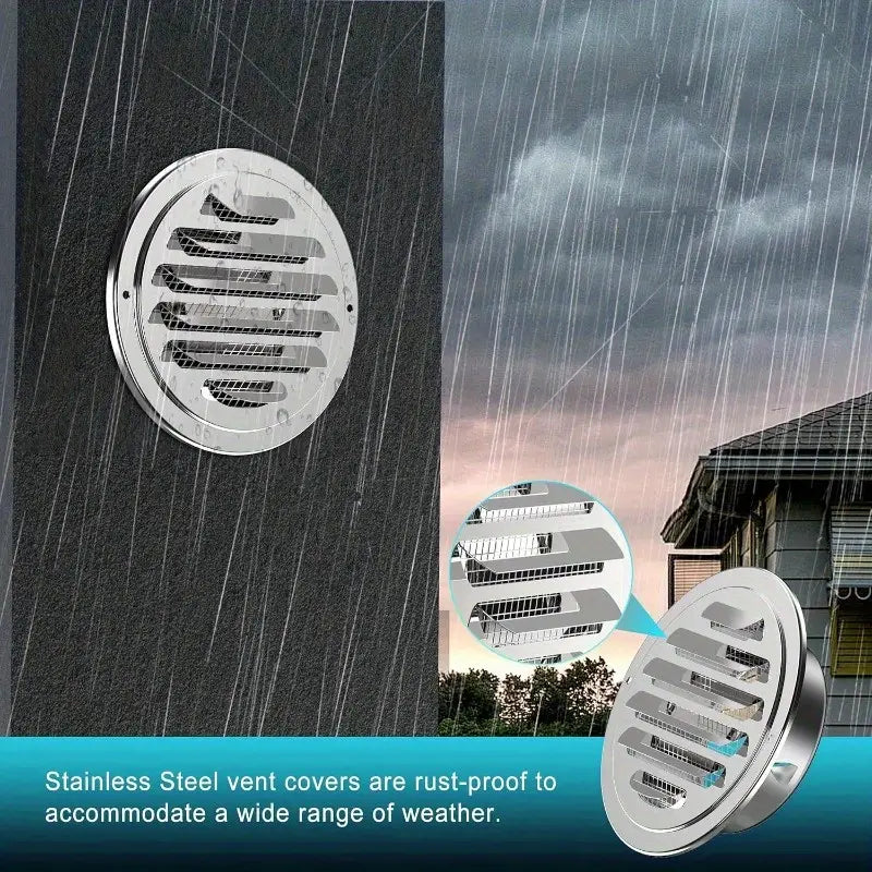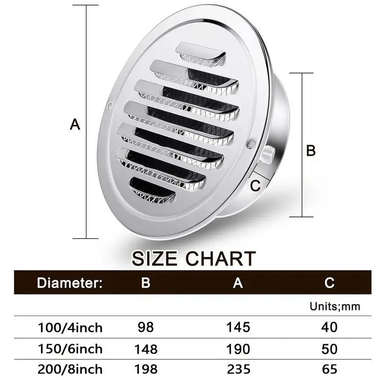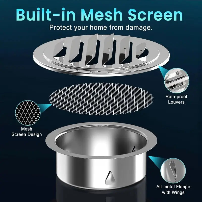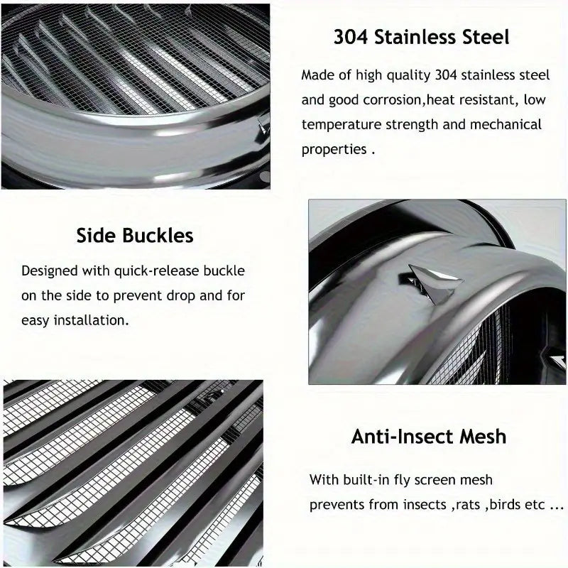 201/304 Stainless Steel Louvered Grille Air Vent with Fly Screen Mesh - 7.62/10.16/15.24/20.32 cm Wall-Mounted Ventilation Hood for Home, Kitchen, Bathroom, Office - Durable Metal Construction, Easy Installation, Modern Design, Kitchen Ventilation, Sleek Metallic Finish, Durable Construction