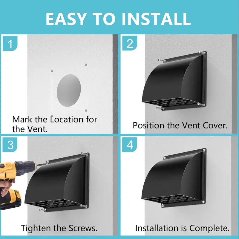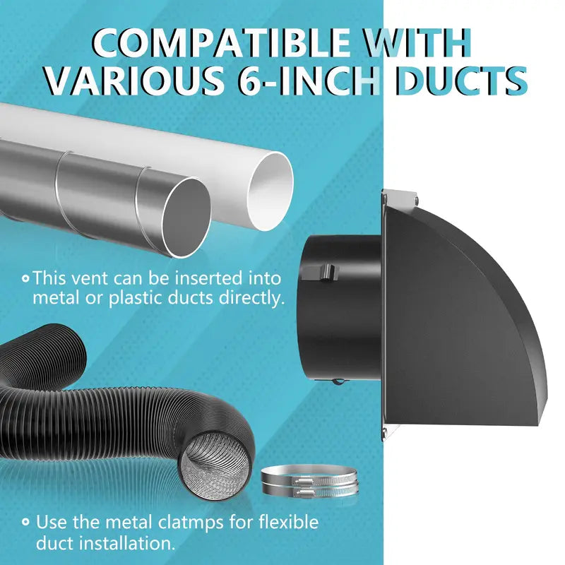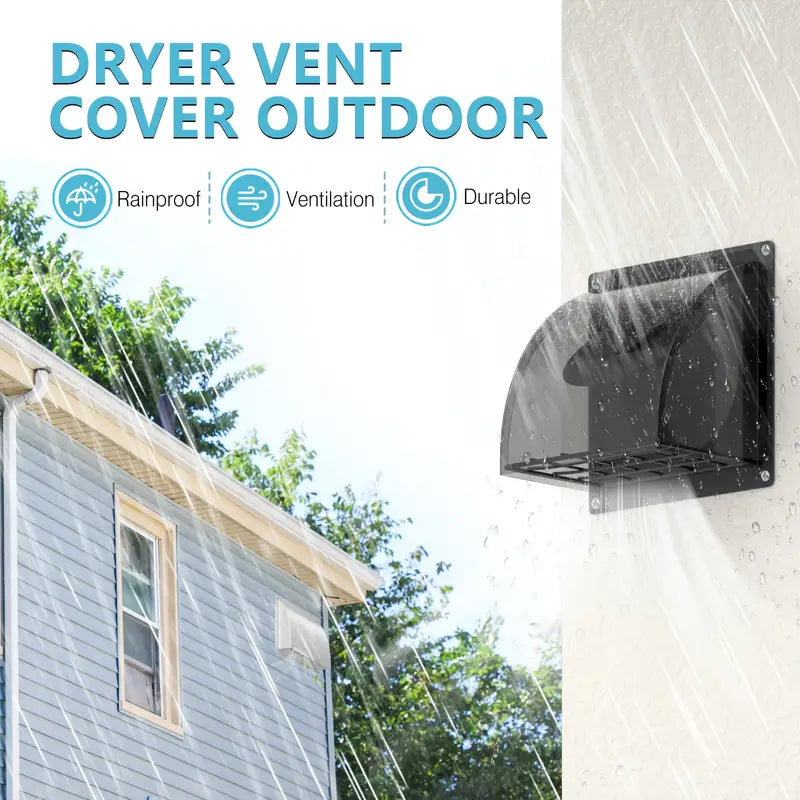 Heavy-Duty Metal Dryer Vent Cover Outdoor - with Non-Pierce Mounting, Noise-Reducing Cushioned Non-Return Flap & Removable Screen - Compatible with 10.16cm (9.68cm Opening) / 15.24cm (14.48cm Opening) - for Clothes Dryer, AC, RV, Garage - Rustproof Construction, Rv Ventilation, Sleek Design, Sturdy Build, Rv Owners, Noise Reducing Vents, Highquality Construction, Home Improvement