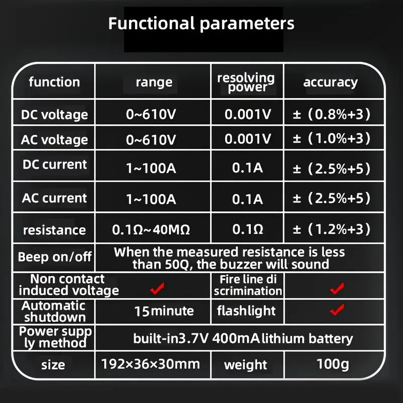 U0 Universal Multimeter with Non-Contact Voltage Detection (NCV) - Digital Display, 36V Safety Rating, Auto/Manual Modes, Ergonomic Design for Electrical Insulation Measurement & AC Power Supply Testing, Multimeter for Electrical Testing, Durable Construction