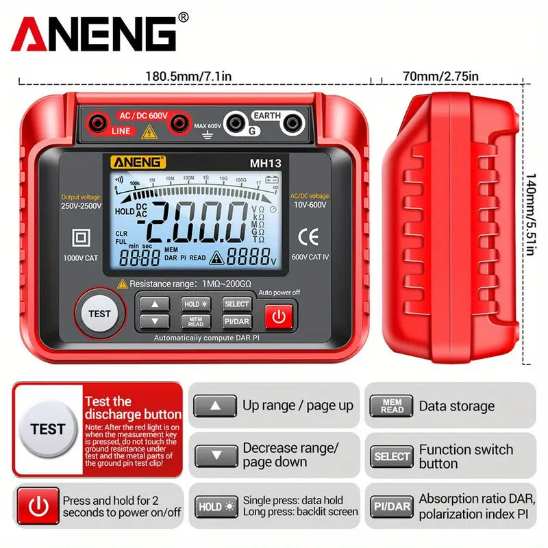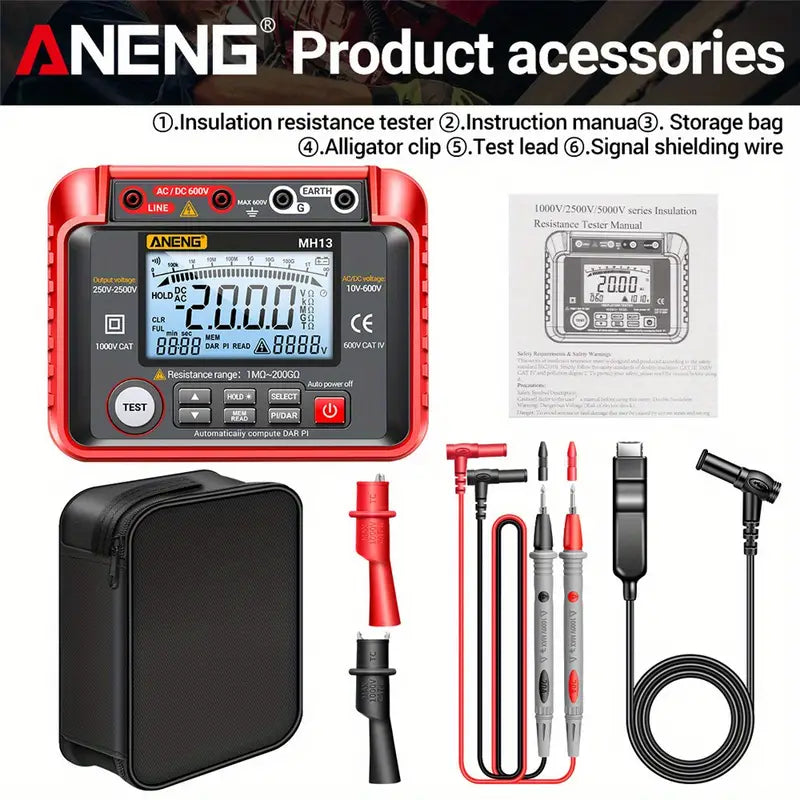 ANENG MH13 Ohm tester Digital multimeter Megohm meter Insulated Earth High voltage Ohm meter Resistance meter Megohm meter No battery