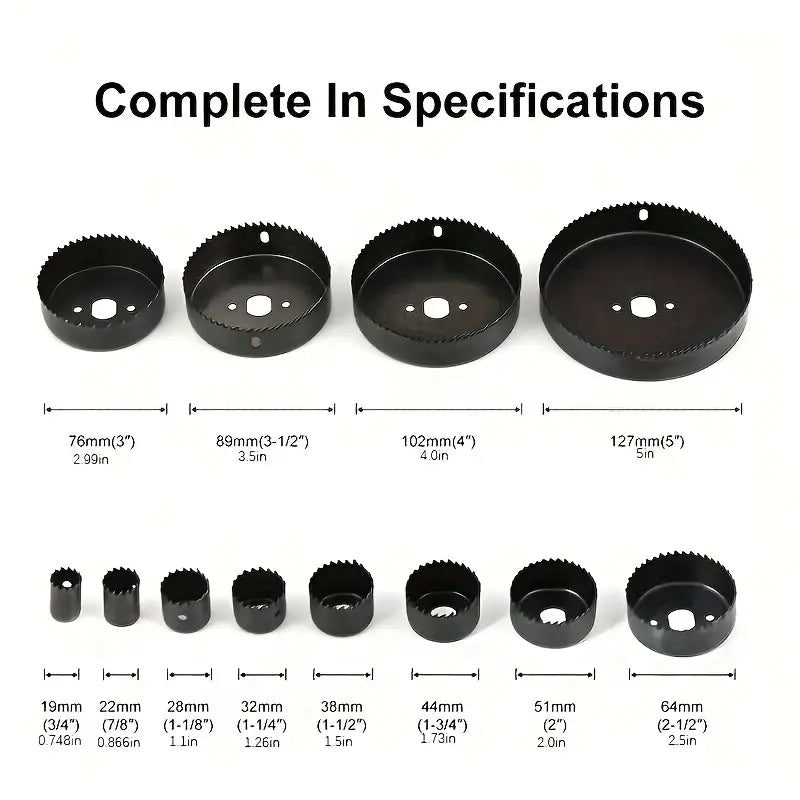 11pcs Carbon Steel Hole Saw Set, Woodworking Drill Bit Set, Multiple Sizes, Suitable for Wood and Metal, Includes Durable Tool Case