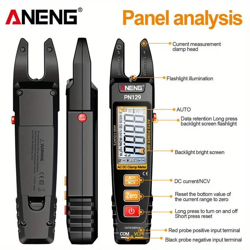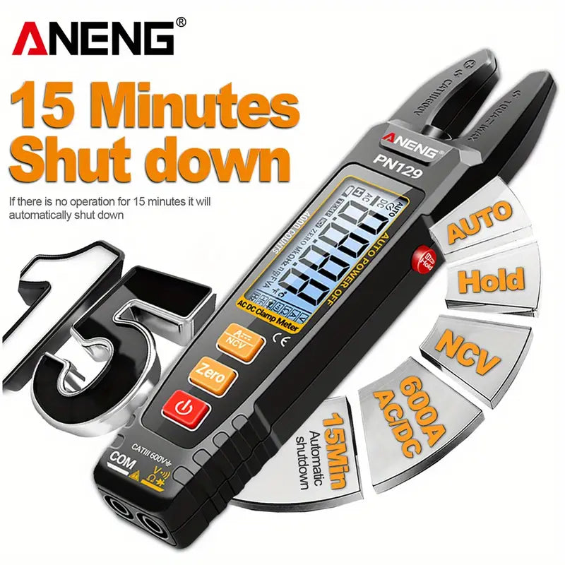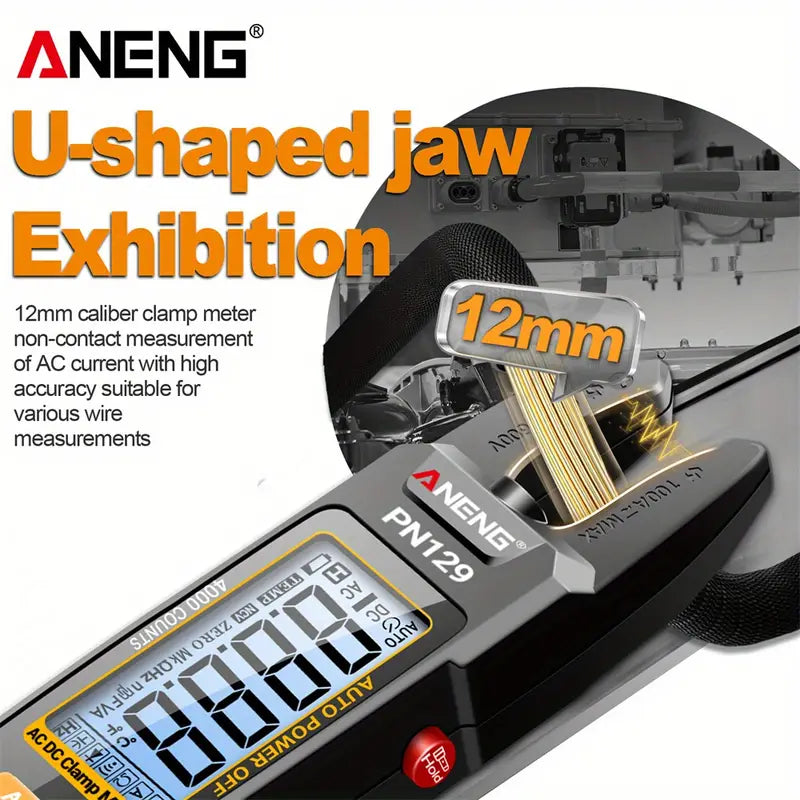 ANENG PN129 4000 Count Multimeter U-shaped Intelligent Clamp Meter AC/ DC 600V Voltage Current Resistance NCV Sensing Test Tool Without battery