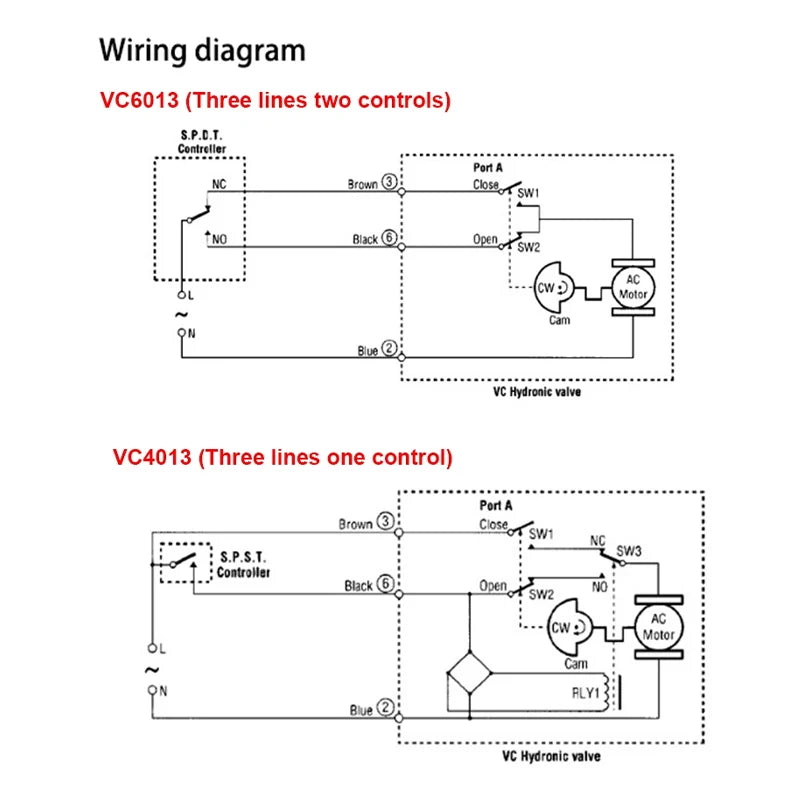 motorized Two-way/Three-way valve can be used in homes and commercial buildings to control the on-off of hot and cold fluids. It includes an actuator and a valve body assembly. For example, they can be applied to stand-alone fan coils, wall panel radiators, convection air heaters, etc. Depending on the selected model, the product can be controlled by single-pole single-throw or single-pole double-throw controllers, such as room temperature controllers, water temperature regulators or water flow switches.